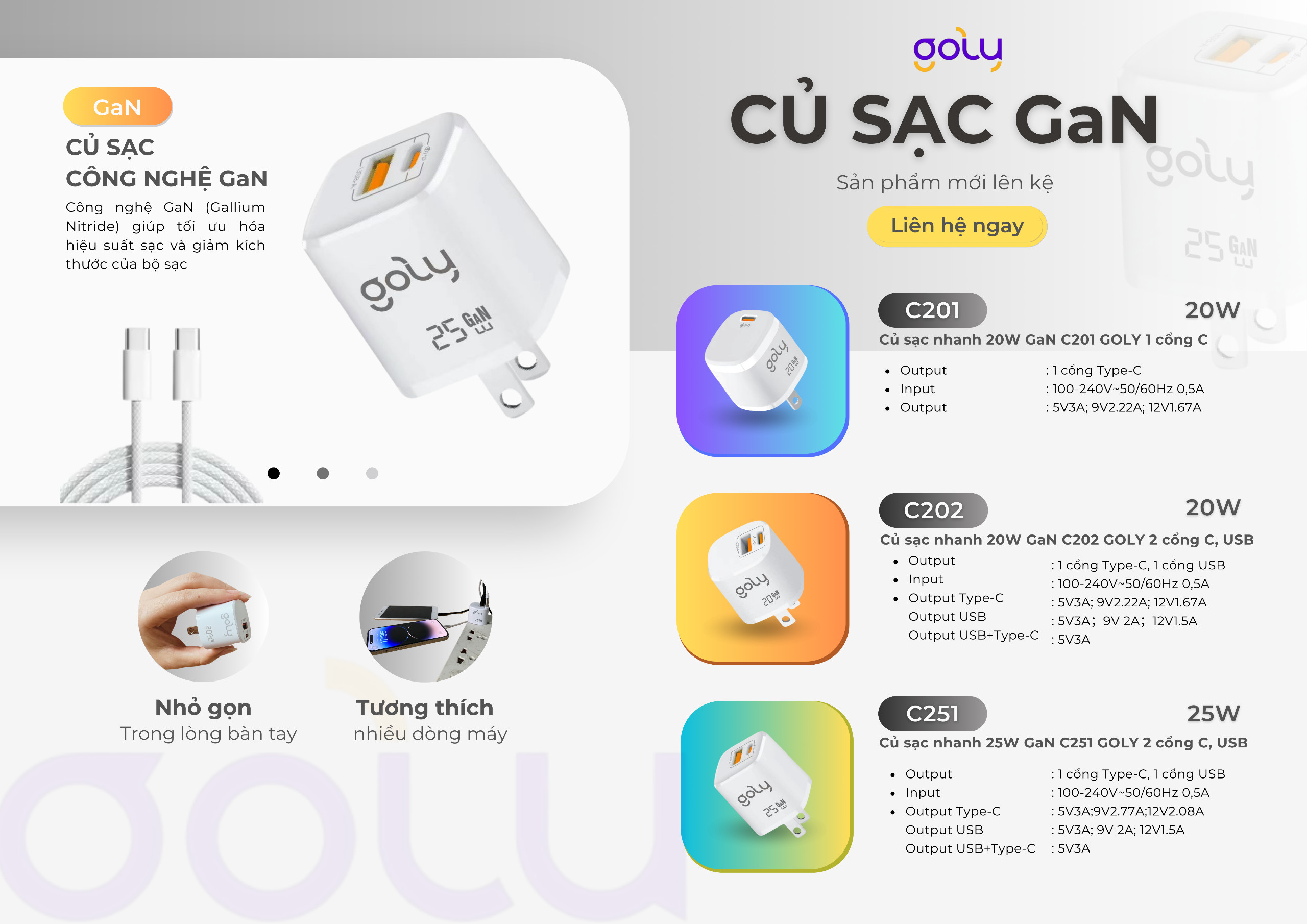 GOLY RA MẮT CÁP SẠC VÀ CỦ SẠC GAN – ĐÓN ĐẦU CÔNG NGHỆ MỚI