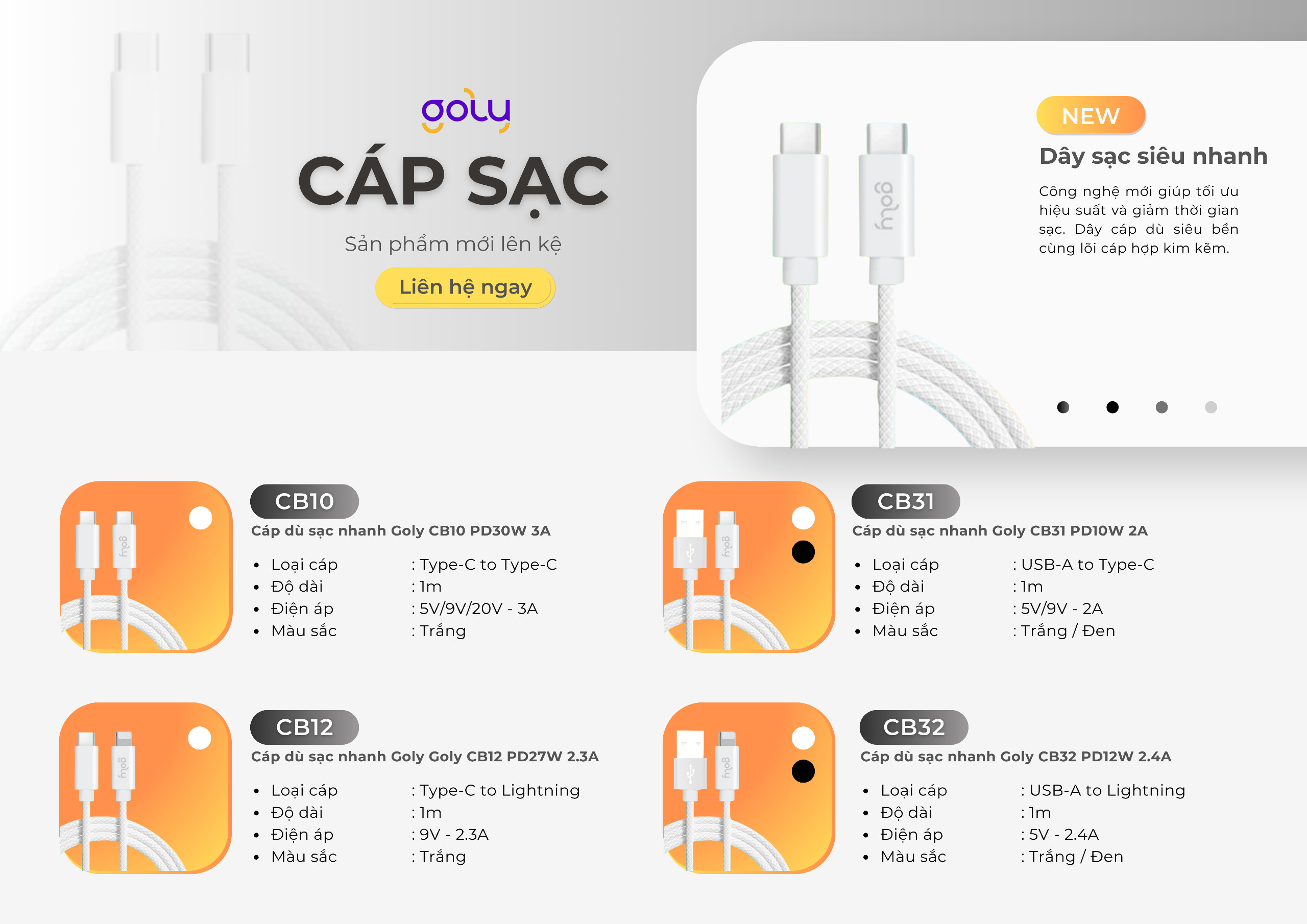 Vậy là sau nhiều ngày chờ đợi, Goly đã chính thức ra mắt thị trường Việt Nam với dòng cáp sạc, củ sạc Goly. Có gì đáng chờ đợi bên trong dòng cáp sạc và củ sạc mới này?