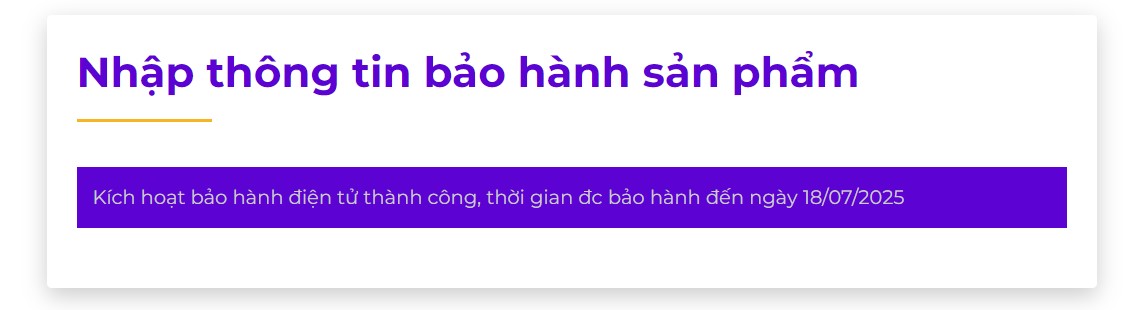 Sau khi hoàn thành, và bấm đăng kí bảo hành. Quý khách sẽ bảo hành thành công và giao diện kích hoạt thành công sẽ như hình.