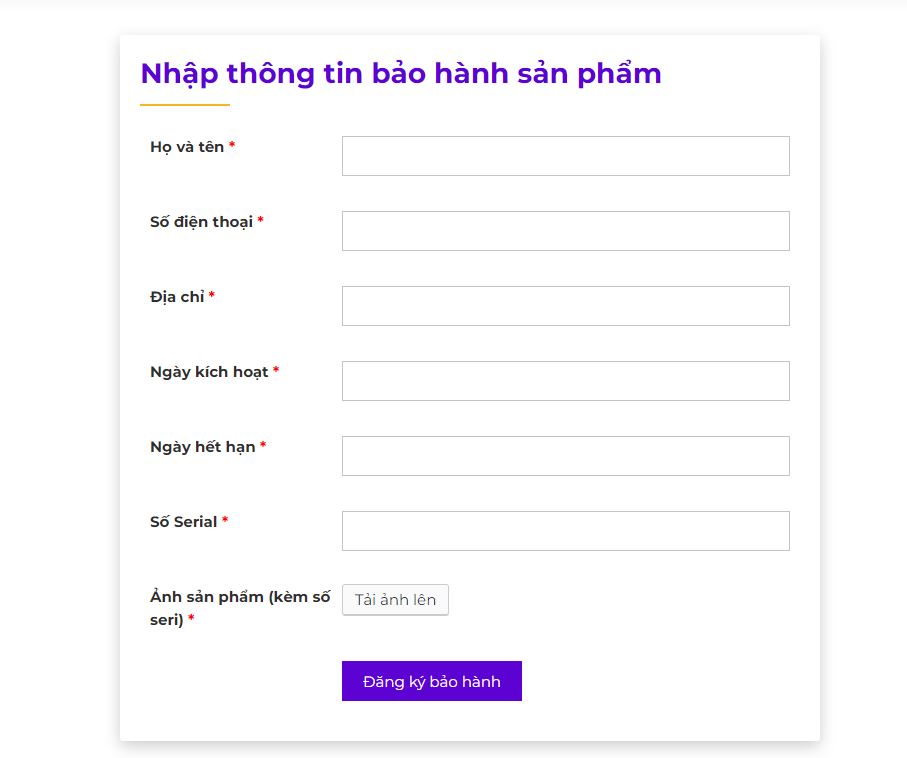 Bước 2: Nhập thông tin bảo hành sản phẩm