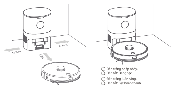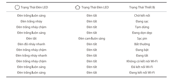 - Trong khi sạc, robot hút bụi không thể tắt nguồn và truy cập vào chế độ ngủ.