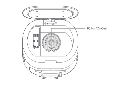 Bộ lọc của quạt nằm bên dưới túi rác. Nếu bụi đã tích tụ trên bộ lọc, hãy lau bằng vải khô và mềm. Bạn nên vệ sinh thiết bị mỗi tháng một lần.