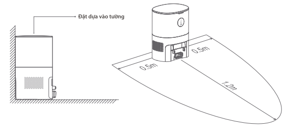Đảm bảo rằng không có chướng ngại vật trong vòng 1,2m phía trước và trong vòng 0,5m ở cả hai phía của trạm sạc.