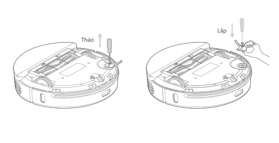 - Tháo ốc vít của chổi phụ bằng tua vít. Sau đó tháo bỏ chổi phụ.