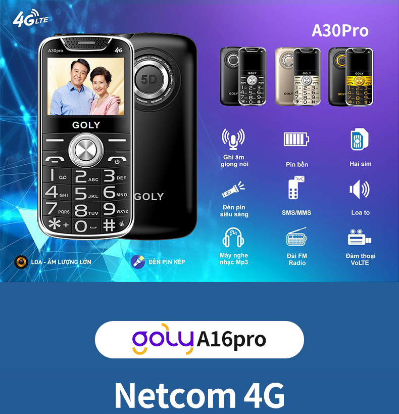Đặt mua Điện thoại người già 4G Goly A30Pro